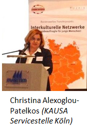 Frau Alexoglou-Patelkos blickt zufrieden auf die beiden Treffen zurück: „Bei den Qualifizierungs- und Austauschtreffen mit den ehrenamtlichen Bildungsbeauftragten in Köln ist es für uns ein großes Anliegen, ihnen über die vielfältigen Angebote beruflicher Bildung zu informieren und sie zu motivieren, sich selber als freie Träger zu professionalisieren. Wir freuen uns, dass wir die beteiligten Migrantenorganisationen in ihrer Rolle als Brückenbauer im Bereich der beruflichen Bildung und in der Kinder- und Jugendhilfe stärken können.“